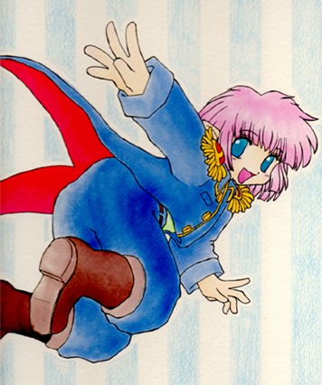 大学時代、学園祭に描いたものです。 個人では集めるのが面倒くさいカラーインクが部室にあったもので それを使って彩色したものです。 ちなみにドクターマーチン。発色が良くてキレイなのですが 退色してしまったのか。スキャナが蛍光色を読み取れないのか なんだかくすんだ色になってしまっている…。 肌のピンクな感じとか出てないよなー。