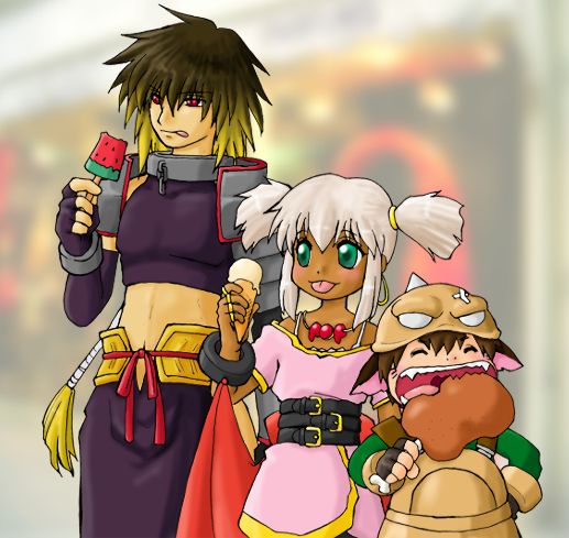 子守りのアルベル アルベルたんお子様と町を練り歩くの図。 左手のガントレットがよくわからなかったのでテキトーに描いてしまいました。 スフレで隠れてはいますがー…。 しかし身長差が嘘っぱちです。 なんか高台にも乗ってるのかとか言うようなお子様達の身長…。