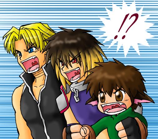 世代別三重奏 三十代の不服。 二十代の鬱積 十代の憤り。 そろってトリオに叫びましょう。 ふ ざ け ん な ! ちょっと(?)アルベルが不似合いか。 しかし、初めて描いたクリフがこれってのもな。 誰に対して叫んでいるのか設定してないですが。 3人同時ツッコミみたいな感じで。 こういう野郎どもの馬鹿くさいノリは好きなんですが。