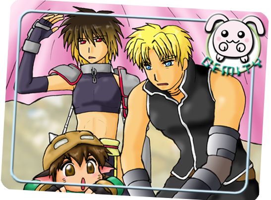 謎のプリクラ ロジャーが謎の機械の前で不思議がっていたらクリフが使い方を教えてくれました。 なぜかアルベルも気まぐれを起こして好奇心でやってきました。 そしたらこんなものが撮れました。 カメラ目線はアルベルだけ。 干支が同じ(多分)なこの3人はわりと好きかも。 しかし、最近のプリクラって、もうこういうサイズじゃないのかしら。
